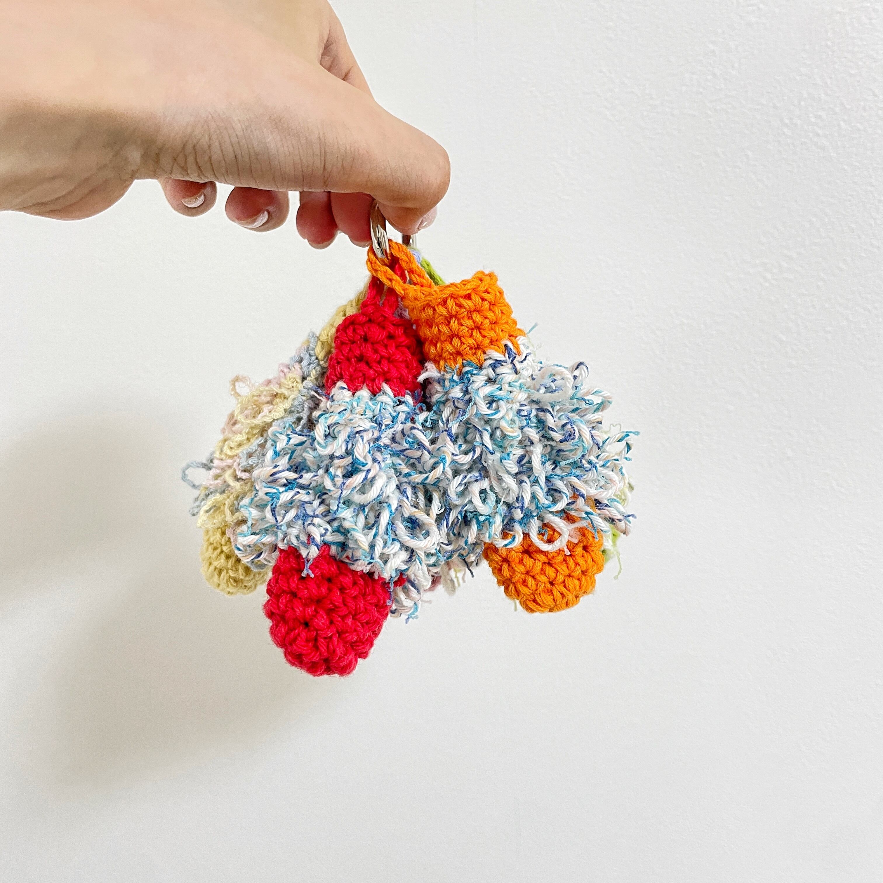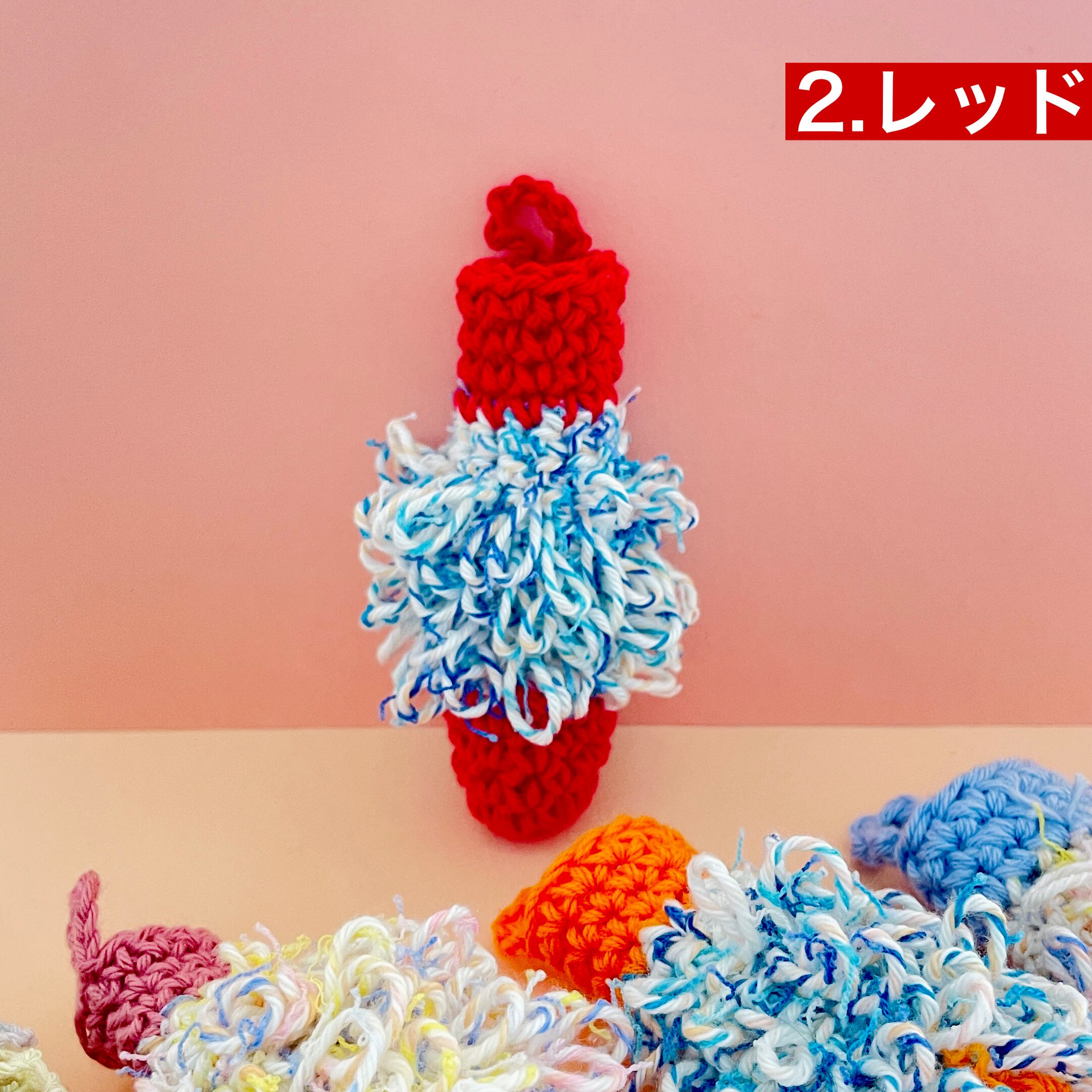 もけもけリップケース リップポーチ リップホルダー 口紅ケース キーホルダー キーチャーム リップ入れ 編み物 カラフル