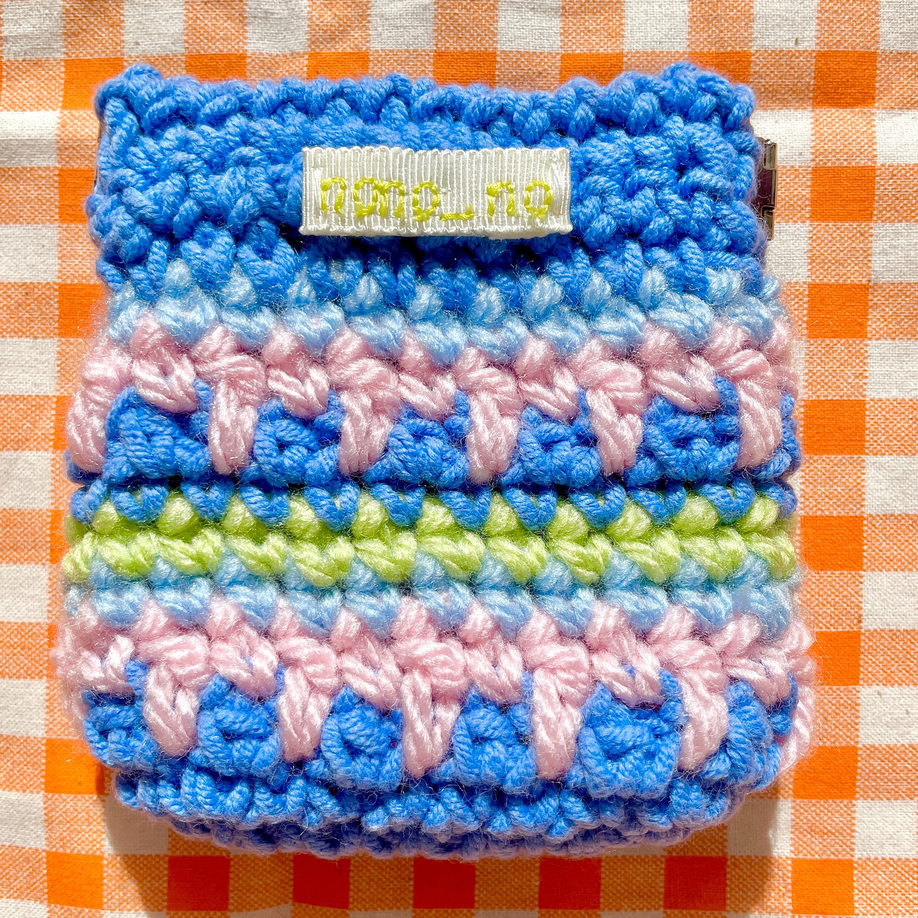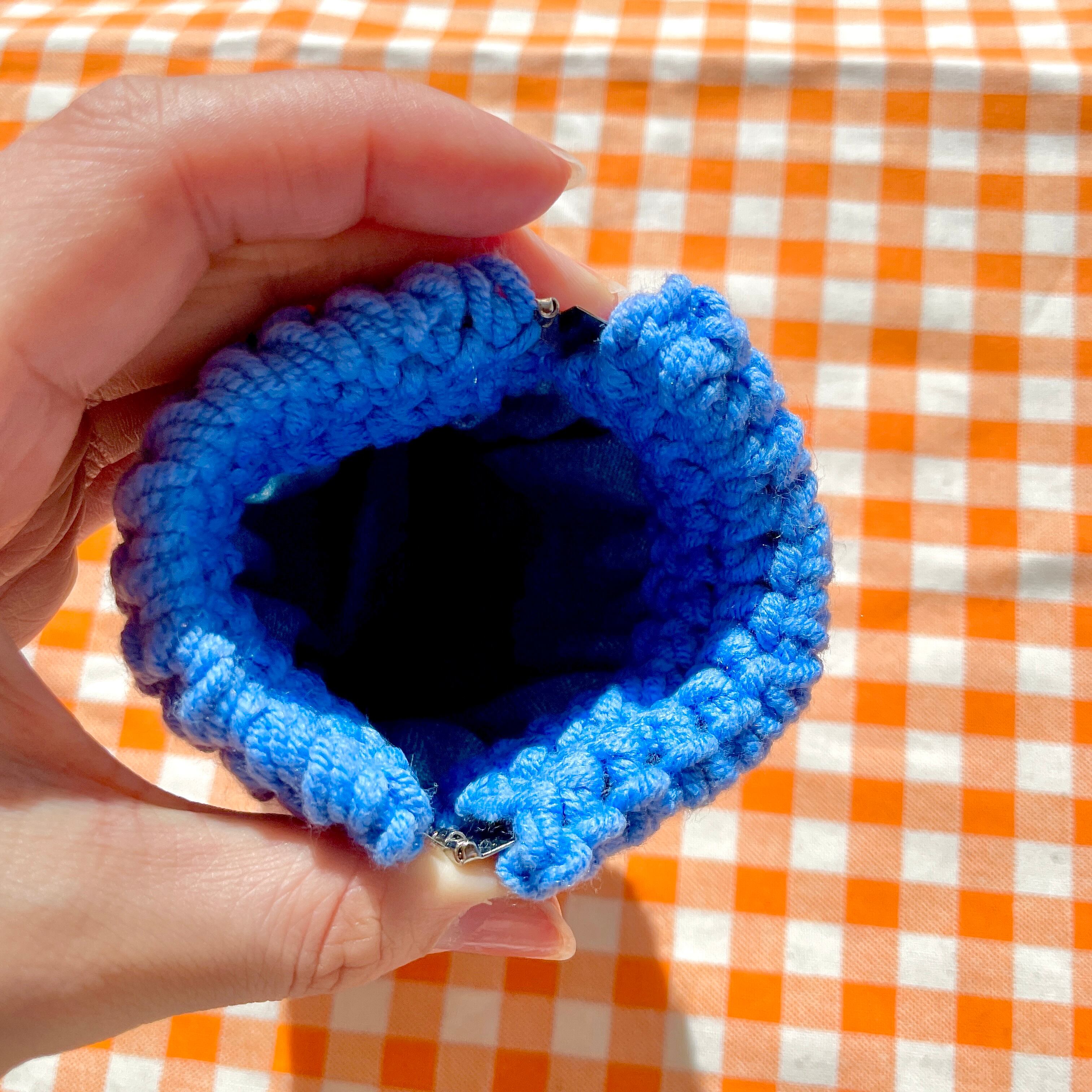 ポーチ 小物入れ 編み物 ブルー 青 個性的 毛糸 財布 小銭入れ